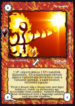 Szöveg: 1 VP: célpont játékos 2 ÉP-t sebződik (tűzsebzés). Ezt a képességet bármely játékos használhatja (tehát nem csak a Tűzivadék gazdája), a saját körében, körönként egyszer.