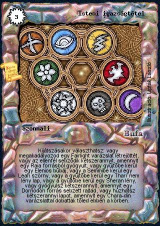 Szöveg: Kijátszásakor választhatsz: vagy megakadályozod egy Fairlight varázslat létrejöttét, vagy az ellenfél sebződik kétszerannyit, amennyit egy Raia forrásból gyógyult, vagy gyűjtőbe kerül egy Elenios bűbáj, vagy a Semmibe kerül egy Leah szörny, vagy a gyűjtőbe kerül egy Tharr nem lény lap, vagy a gyűjtőbe kerül egy Sheran lény, vagy gyógyulsz kétszerannyit, amennyit egy Dornodon forrás sebzett rajtad, vagy húzhatsz kétszerannyi lapot, amennyit egy Chara-din varázslattal dobattak tőled ebben a körben.
